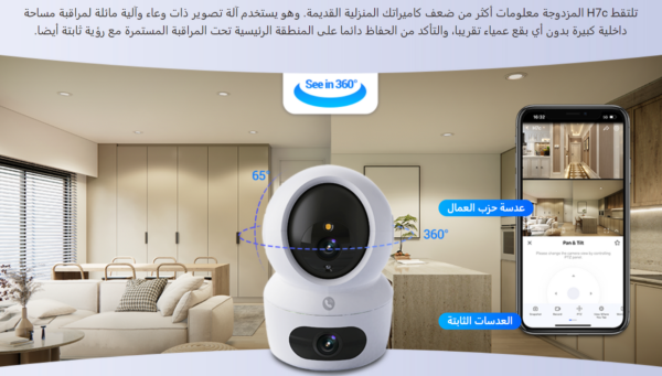 - عدسات مزدوجة بدقة 2K⁺ لتغطية أوسع بزاوية 360 درجة.